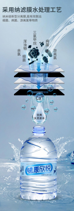 我們的純凈水采用二級(jí)反滲透水處理工藝,成品水品質(zhì)穩(wěn)定,口感綿柔。我們的山泉水采用納濾膜制作工藝,去除有害物質(zhì)而保留部分礦物質(zhì),該工藝可自由調(diào)配,做到口感與礦物質(zhì)兼?zhèn)洌炔粫?huì)過多的礦物質(zhì)導(dǎo)致口感偏硬,也不會(huì)為了追求口感而缺失礦物質(zhì)的含量。